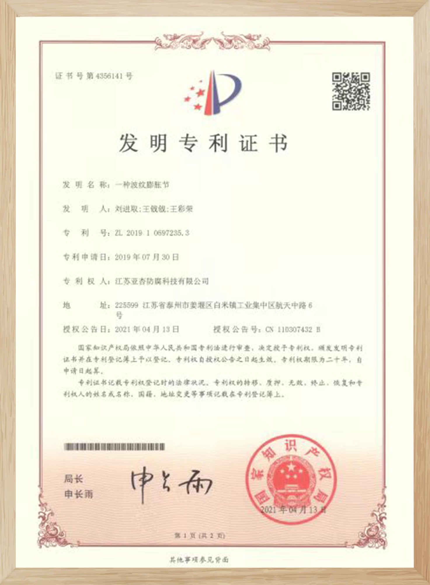 發明專利證書